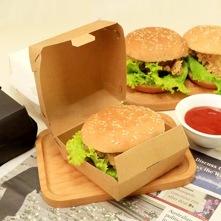 High quality Corrugated Paper Burger Box, disposable Eco friendly Hamburger Packaging.